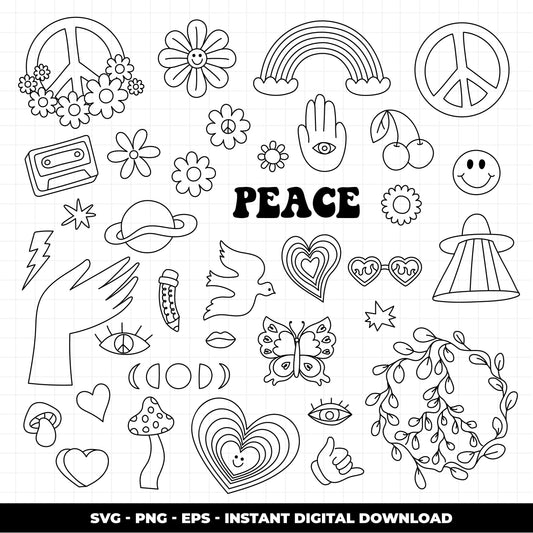 COD1400 - Retro Clipart, Boho Hippie Clipart Clipart, Groovy cliparts, scrapbook cliparts, Retro svg, hippie svg