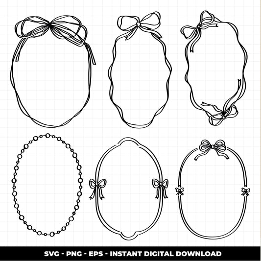 COD3132 - Doodle bow coquette clipart, Frames Clipart, Aesthetic frames Clipart, frames printable