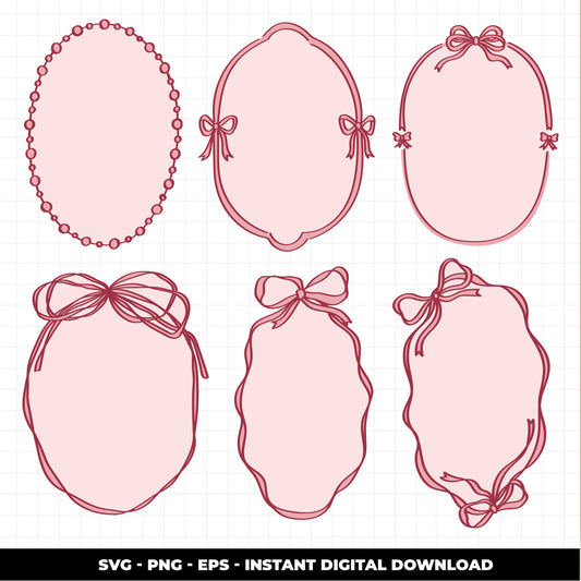 COD2996 - Doodle bow coquette clipart, Frames Clipart, Aesthetic frames Clipart, frames printable