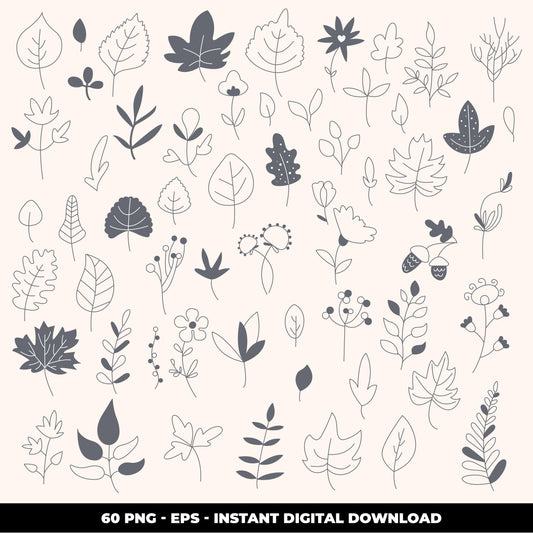 COD824 - Leaves clipart, Hand Drawn Leaves, Plant png, Paper Leaves, Leaf Templates, Wreath, Cut Files, Leaf Clipart, Cricut Silhouette