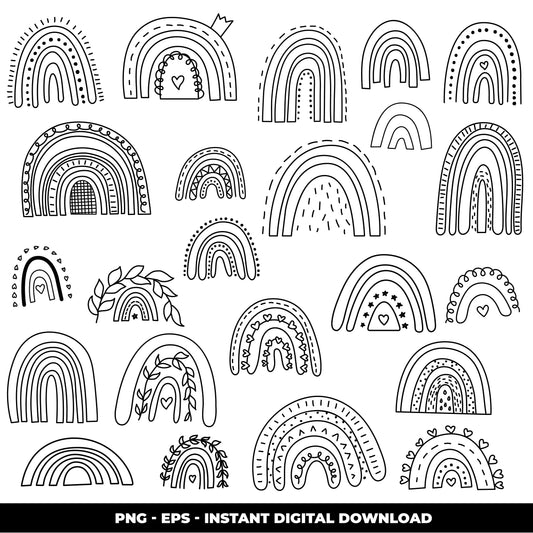 COD868 Rainbows doodle clipart, rainbow digital clip art set, rainbow vector, rainbow printable, Commercial use