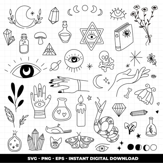 COD878 Magic svg Bundle, Witch item Svg, Magic bottle Svg, Witchy svg, Runes Svg, Mystical witchy svg bundle, Magic mushroom svg, Halloween svg, Skull and butterfly svg, Crystals svg