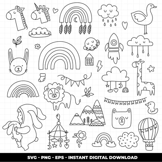 COD938 Baby svg, baby doodle svg, baby png, baby clipart, unicorn baby svg