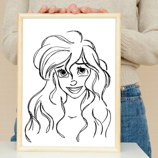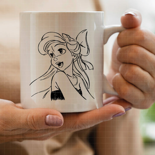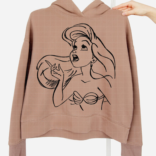 COD1684- Little Mermaid png, Ariel png, Outline png, Princess sketch png, disney png