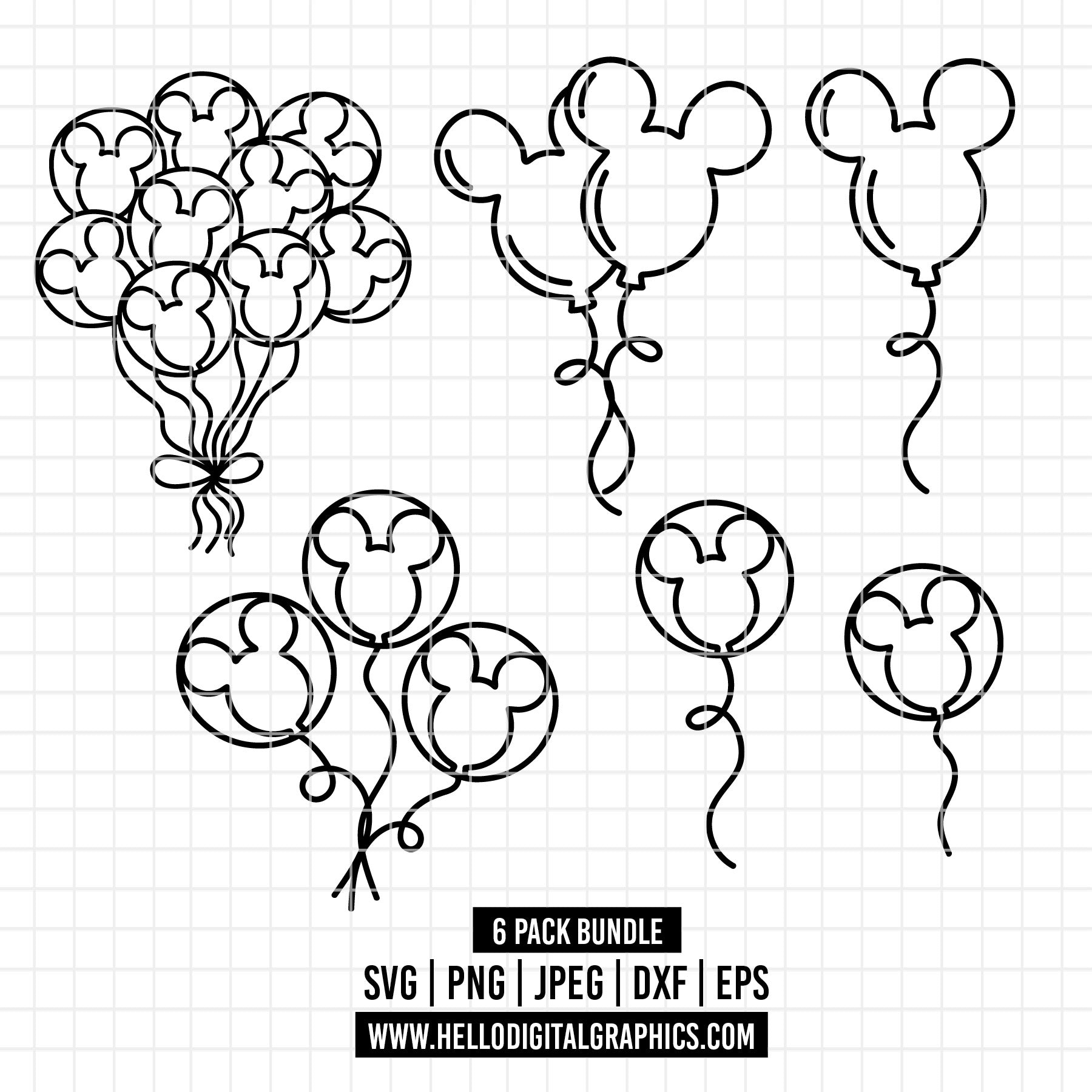 COD2337- Mickey Ballon svg, Mouse Balloon Bunch Cut File, Magical Park Kingdoms Vacation png pdf dxf ai eps For Silhouette, Cricut